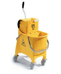 Balde WITTY 30 L, balde duplo, compacto nas dimensões, com a divisória central removível e hermética, mantém separada a água de enxágue da solução química. Mais alto que os baldes tradicionais, permite trabalhar em posição ereta.